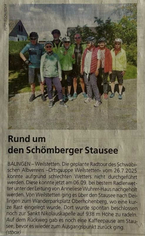 Radtour „Auf Umwegen rund um den Schömberger Stausee“ – erschienen am 09.09.2025 im Zollern Alb-Kurier