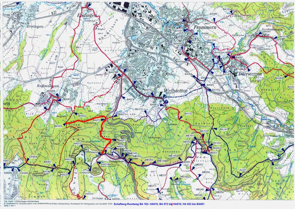 von der Ortsgruppe Weilstetten betreute Wanderwege